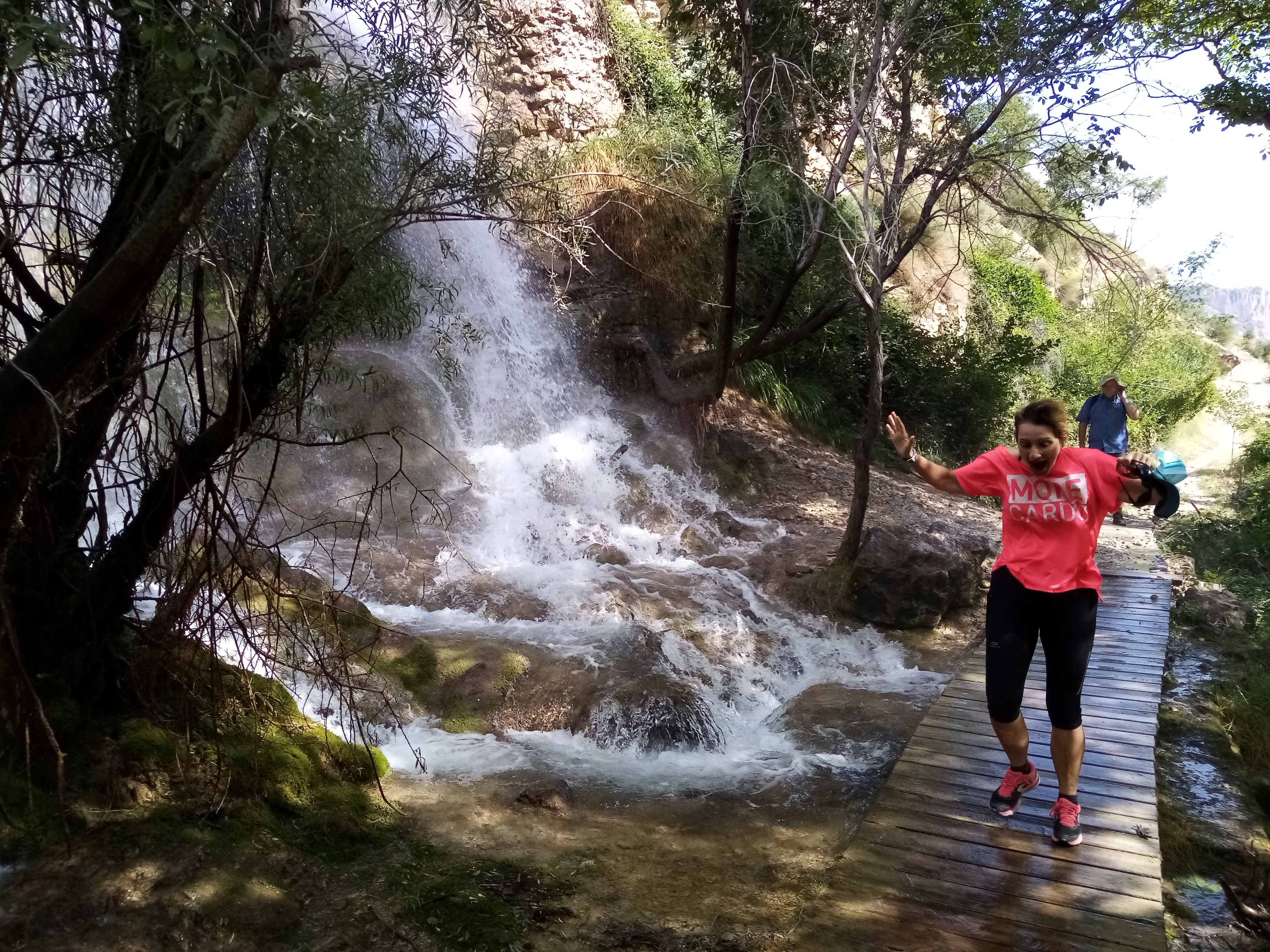 The first 2 kilometers of the trail are quite dry, but as you progress and pass by a waterfall, you find yourself walking on wet paths, having more and more contact with water. This culminates at the end of the trail – the headwaters of Pitarque river, as the river is in full flow there and you get to walk up right next to it. Here it is possible to walk through the water, and even go for a swim, although the water is ice-cold all year round and nobody in our group was eager to jump in the water. The area is quite wide and there are several ways to scramble and get a bit farther ahead.